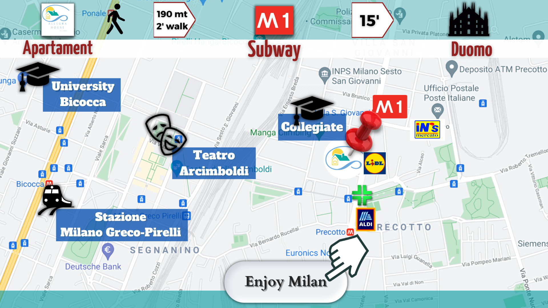 A soli 100 metri da Allegra House, in via Soffredini 16, si trova il Padel Palace Srl, che ospita al suo interno un Bistrot firmato dallo chef Alessandro Borghese.